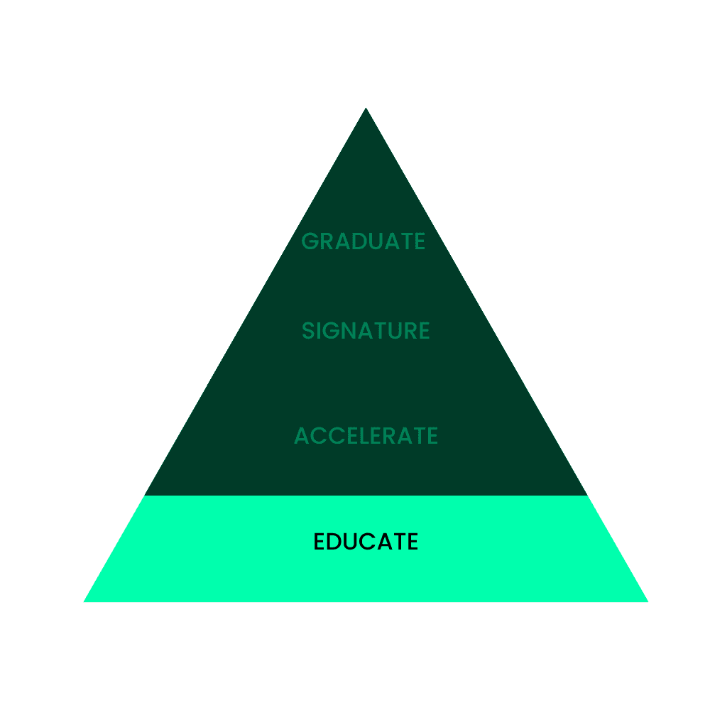 Join as an Educate member to build a strong foundation for startup success. You're a good fit for this stage if you already have a concept or are working on building your Minimal Viable Product (MVP). We'll help you as you define your value proposition and identify your target market with our robust curriculum and coaching.